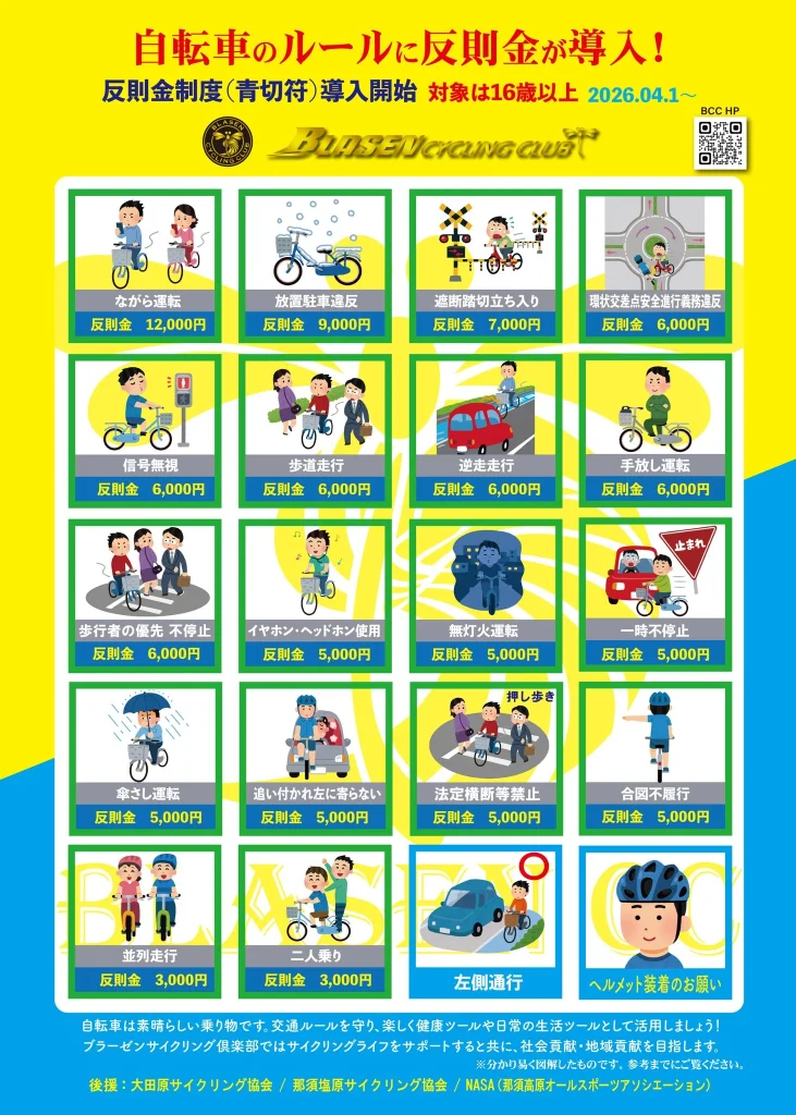 2026年4月1日から、自転車の反則金制度、いわゆる「青切符」制度が導入されます。